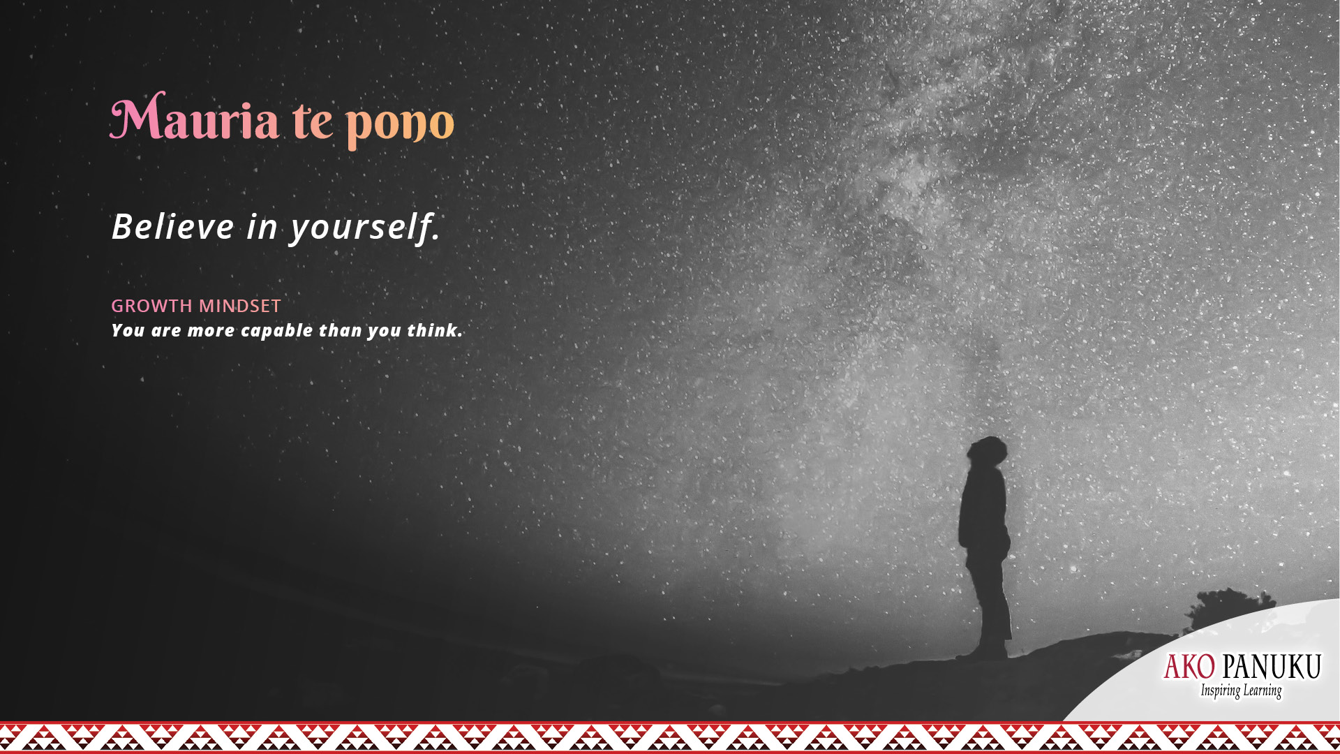 “Mauria te pono.” A virtual background to add to your online classroom profile. Black and white.